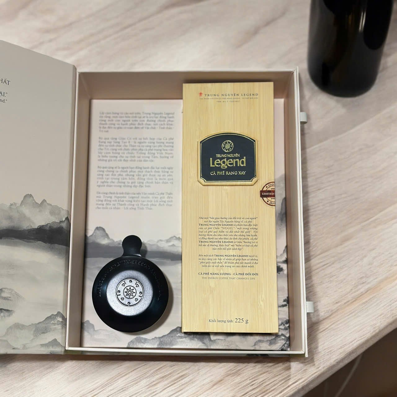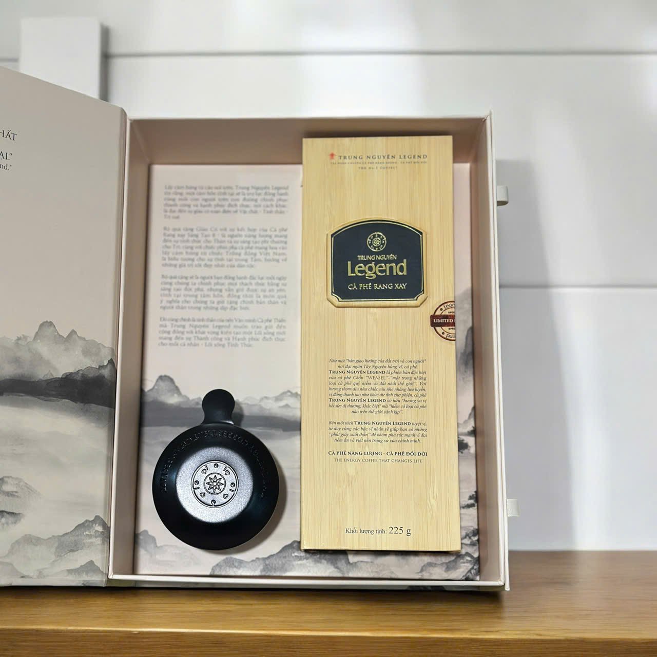 - Hộp Quà tặng Legend Trung Nguyên gồm: Hộp cà phê chồn Legend + Phin cà phê đen Legend + Túi xách